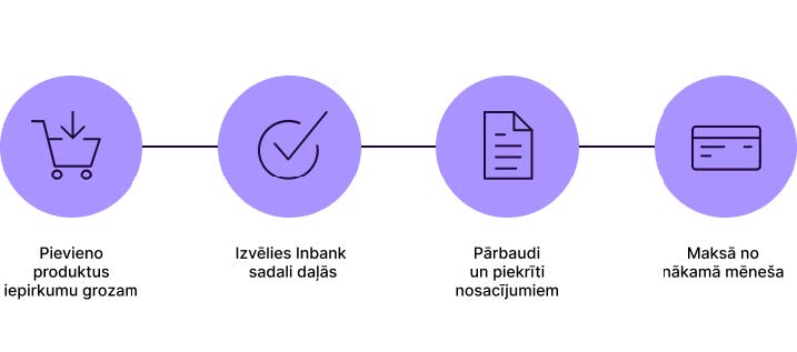 Inbank sadali daļās ir gudrs veids, kā iegūt visu nepieciešamo uzreiz, nepārmaksājot. Inbank sadali daļās vienmēr ir bez maksas – bez procentiem, līguma maksas vai pirmās iemaksas.